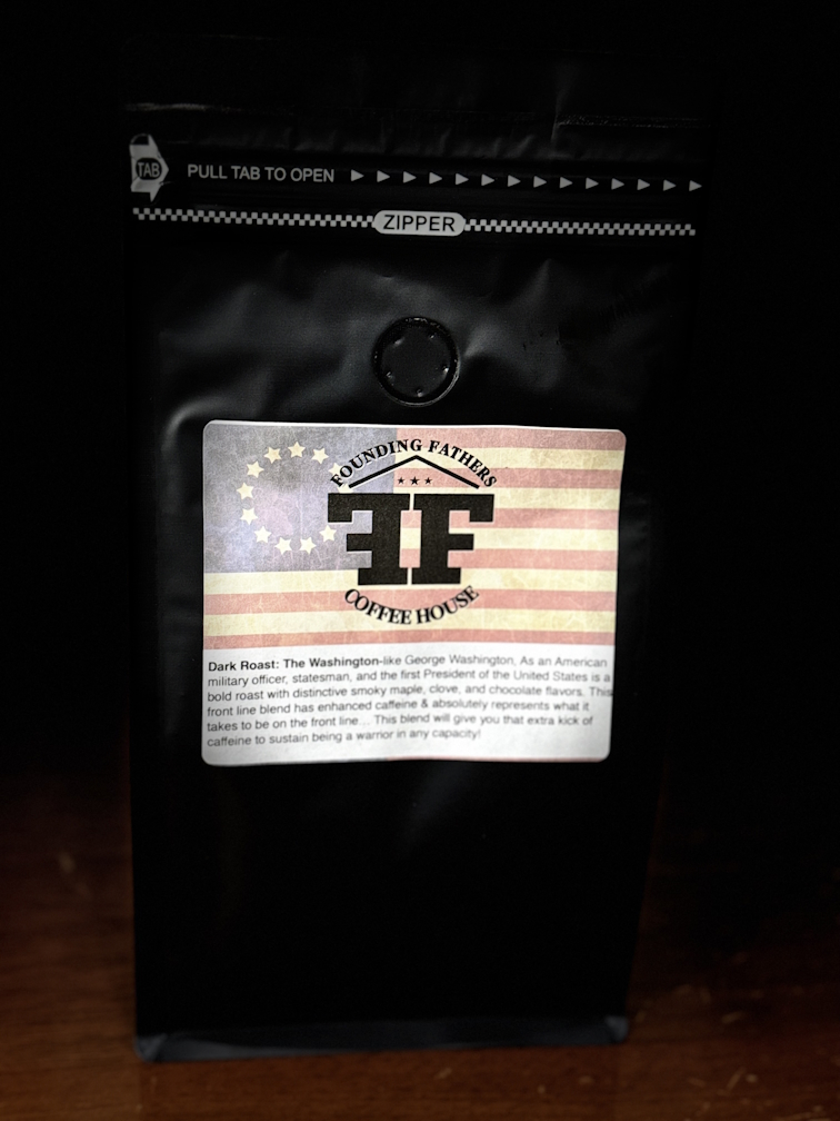 Dark Roast The Washington-like George Washington, As an American military officer, statesman, and the first President of the United States is a bold roast with distinctive smoky maple, clove, and chocolate flavors. This front line blend has enhanced caffeine & absolutely represents what it takes to be on the front line… This blend will give you that extra kick of caffeine to sustain being a warrior in any capacity!